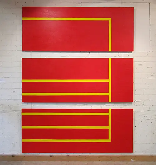 Rot mit Gelb Acryl auf Papier auf Aluplatte je 60 x 150 cm, 2002